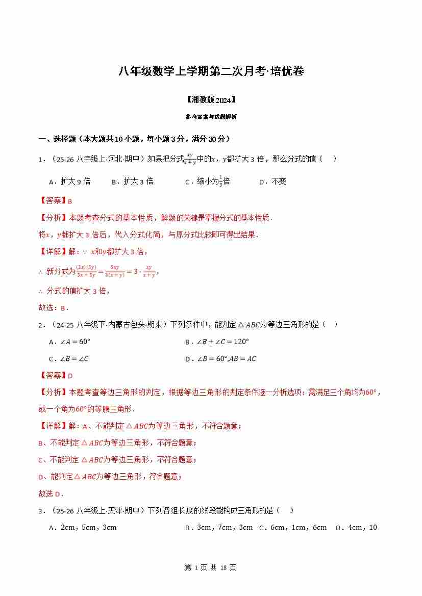 首页 > 全部 > 月考试卷 > 八年级数学上学期第二次月考·培优卷(湘教版2024)(解析版)
