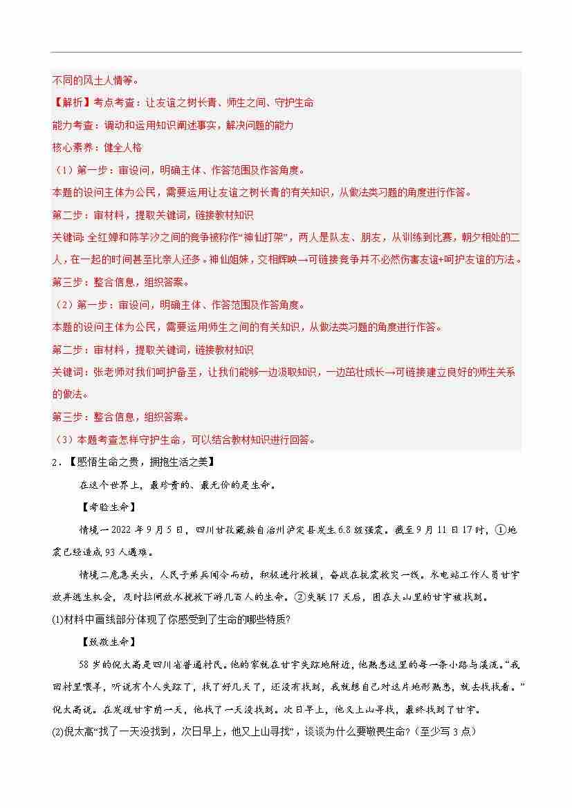 首页 > 全部 > 期末专项 > 专题10 保持身心健康(高频非选择题20题)(解析版)