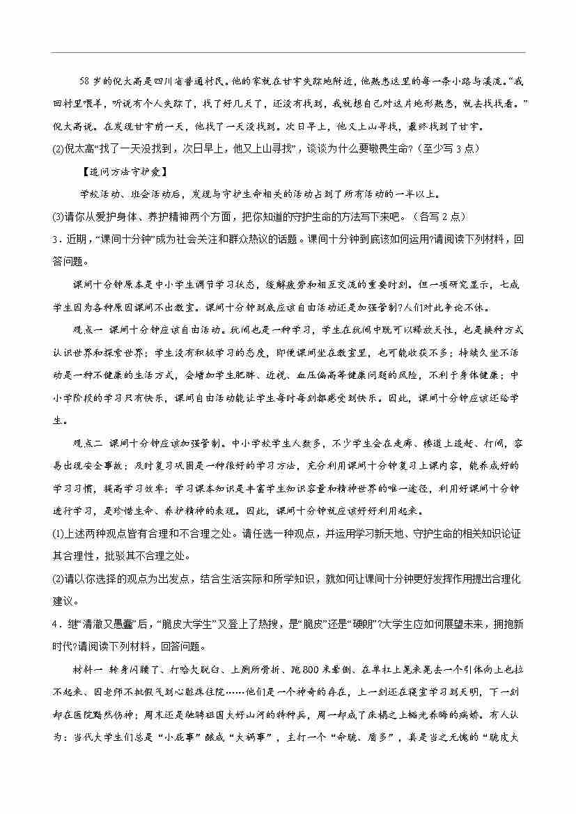 首页 > 全部 > 期末专项 > 专题10 保持身心健康(高频非选择题20题)(学生版)