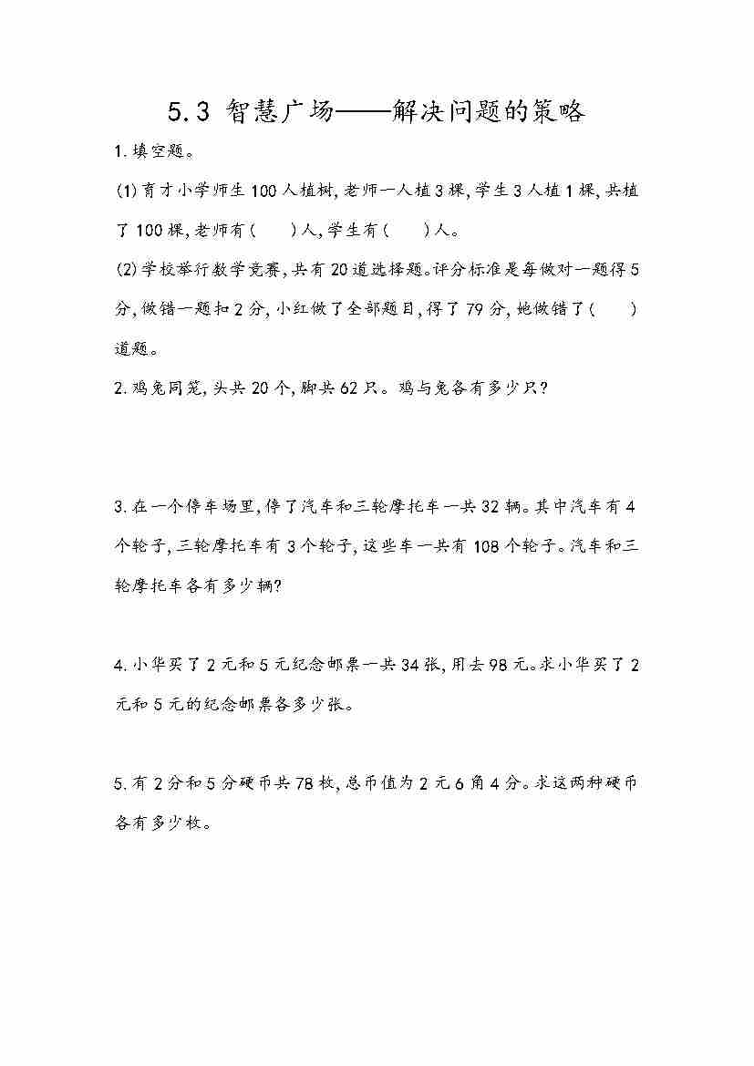 【青岛63制】六(下)数学课时练:5.3 智慧广场——解决问题的策略