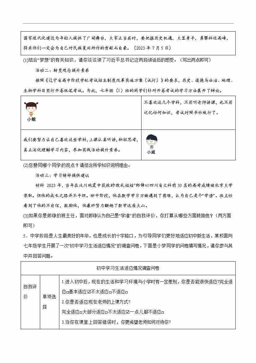 首页 > 全部 > 期末专项 > 专题11 确立人生目标(高频非选择题6题)(学生版)