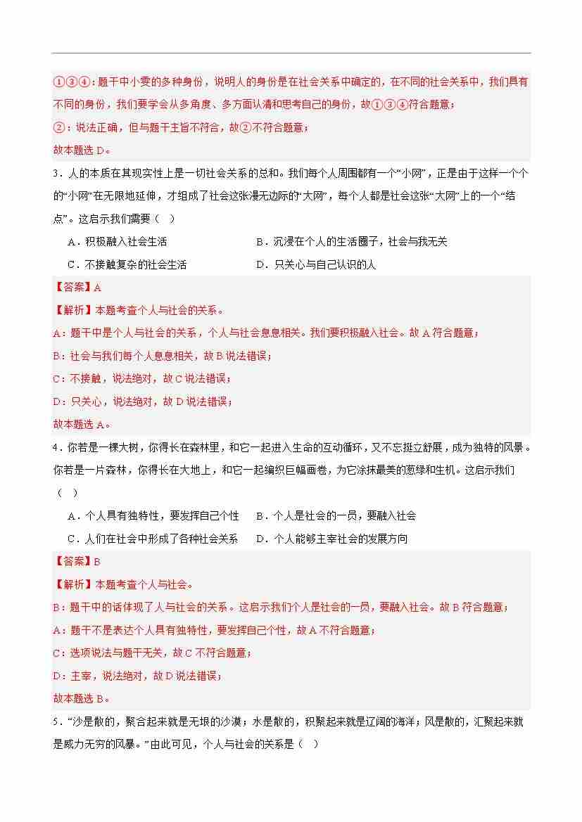 首页 > 全部 > 期末专项 > 专题11 确立人生目标(高频选择题40题)(解析版)