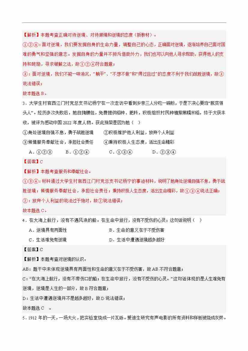 首页 > 全部 > 期末专项 > 专题12 端正人生态度(高频选择题40题)(解析版)
