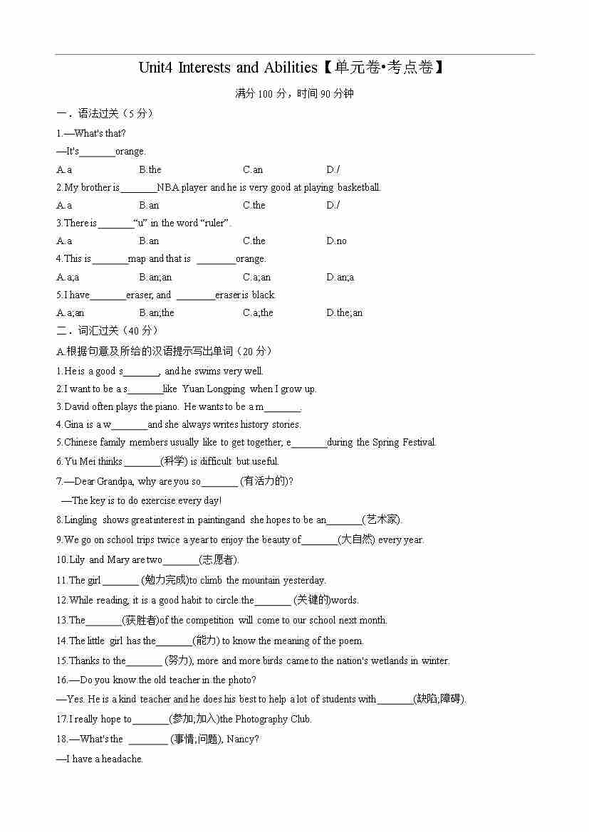 首页 > 全部 > 单元考点卷 > Unit4 Interests and Abilities【单元卷•考点卷】(原卷版)