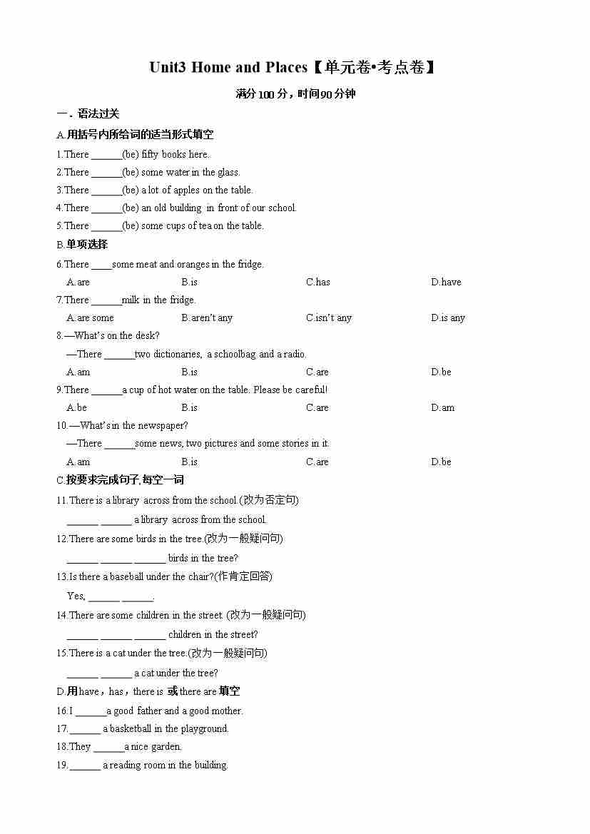 首页 > 全部 > 单元考点卷 > Unit3 Home and Places【单元卷•考点卷】(解析版)