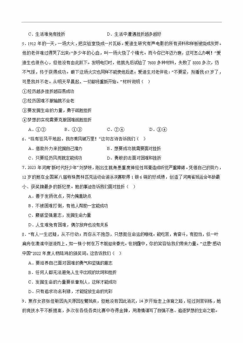 首页 > 全部 > 期末专项 > 专题12 端正人生态度(高频选择题40题)(学生版)