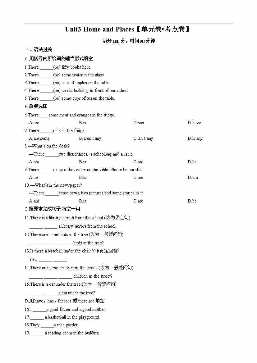 首页 > 全部 > 单元考点卷 > Unit3 Home and Places【单元卷•考点卷】(原卷版)