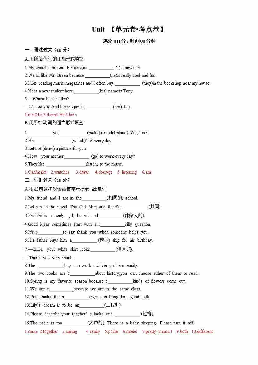 首页 > 全部 > 单元考点卷 > Unit1 Family 【单元卷•考点卷】-2024-2025学年七年级英语上册单元速记•巧练(北师大版2024)(解析版)