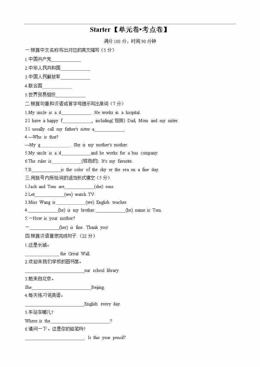 首页 > 全部 > 单元考点卷 > Starter【单元卷•考点卷】-2024-2025学年七年级英语上册单元速记•巧练(北师大版2024)(原卷版)