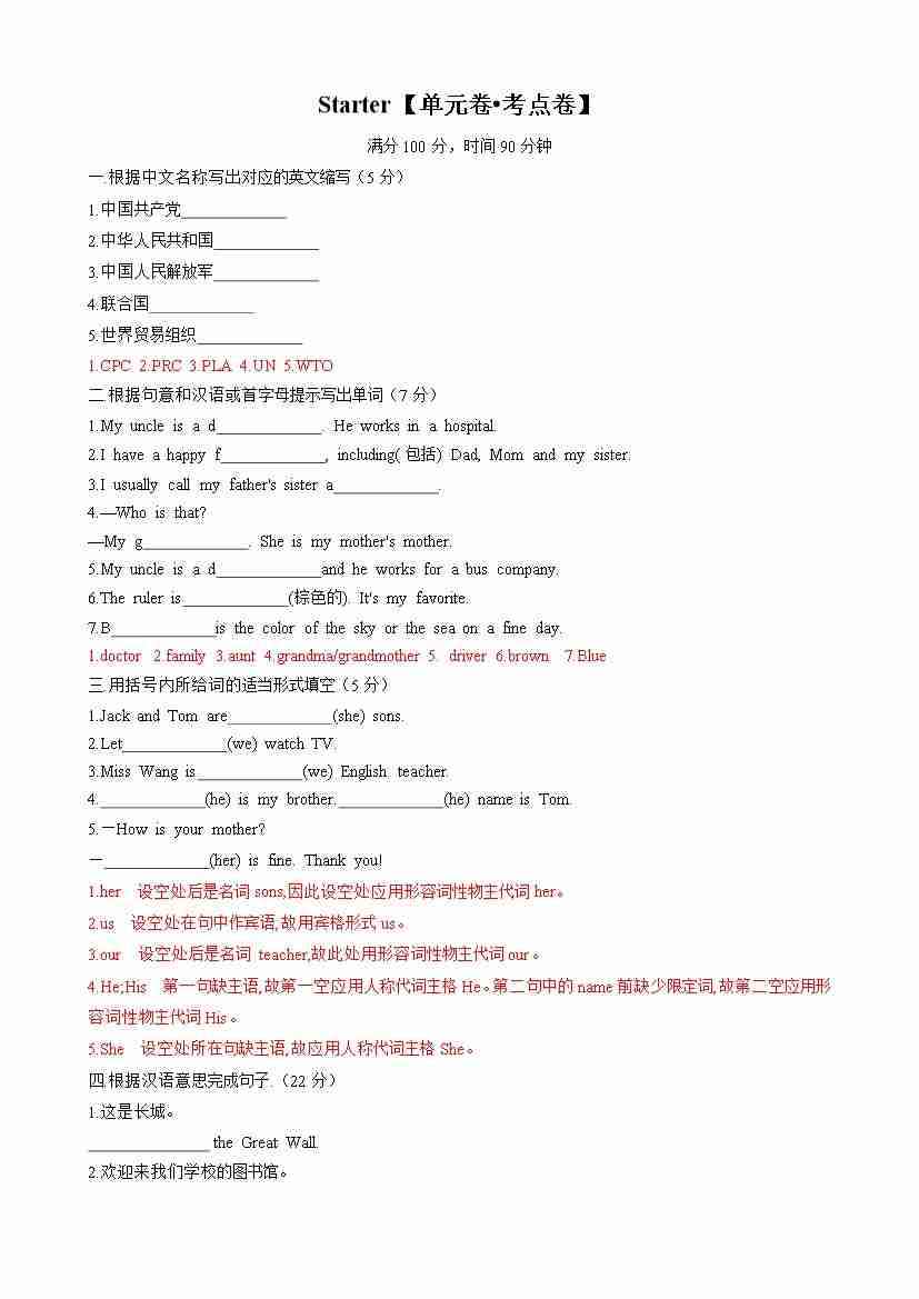 Starter【单元卷•考点卷】-2024-2025学年七年级英语上册单元速记•巧练(北师大版2024)(解析版)