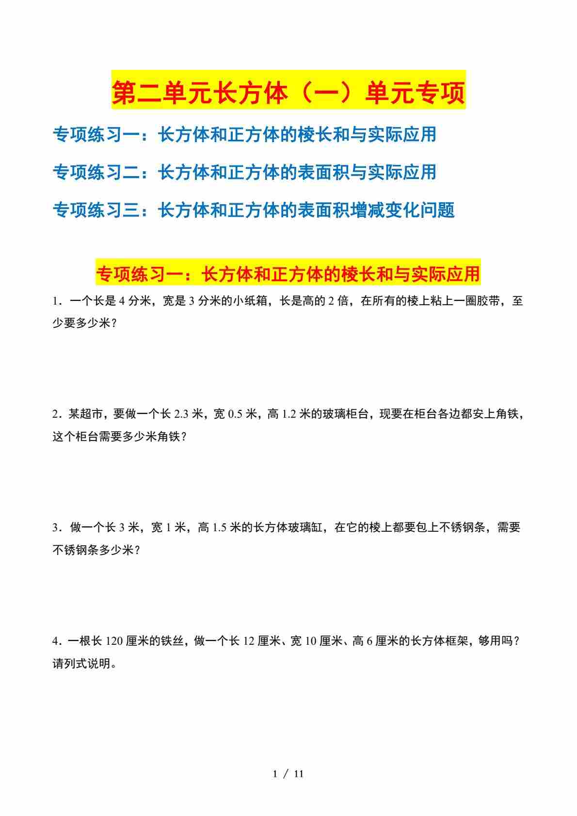 首页 > 全部 > 专项练习 > 第二单元:长方体(一)——课后打卡(空白)北师大