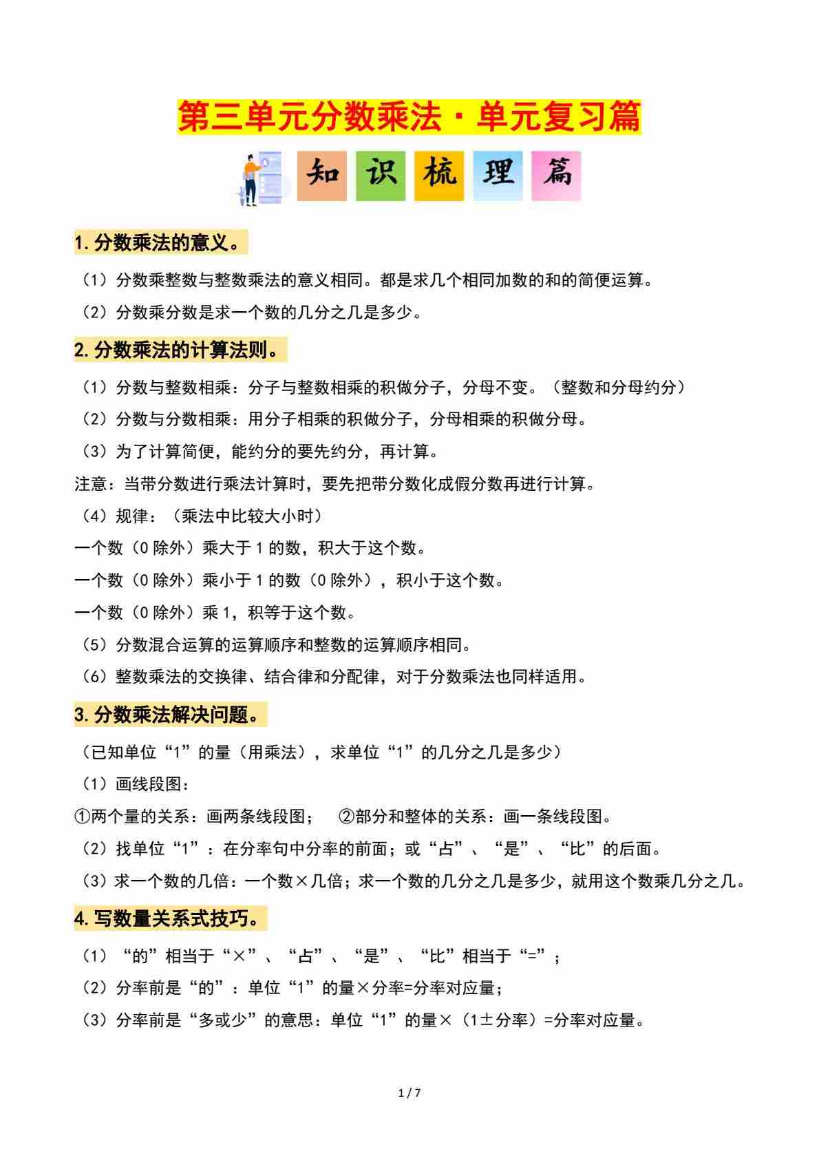 首页 > 全部 > 专项练习 > 五下北师版数学【第三单元:分数乘法·单元复习篇(原卷版)】