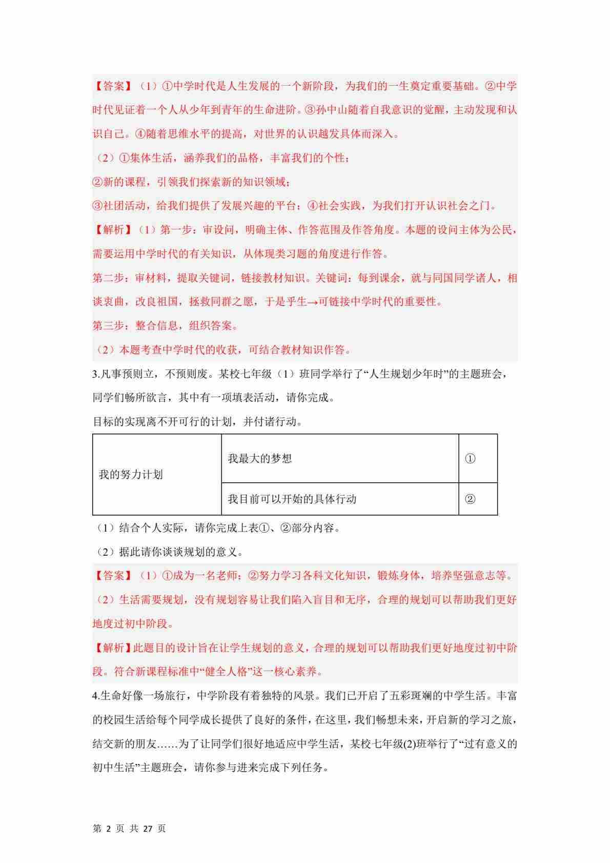 首页 > 全部 > 期中复习 > 七年级道德与法治期中复习—必刷主观题(36题)(解析版)