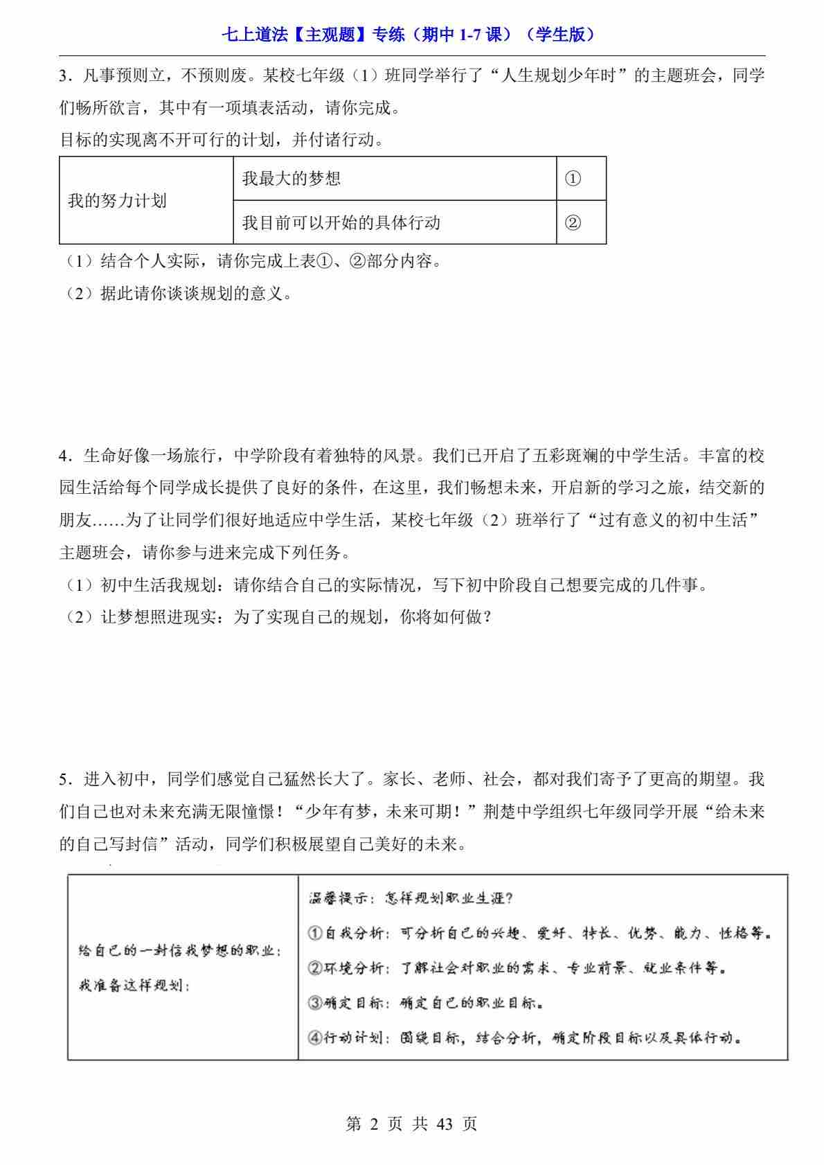 首页 > 全部 > 期中复习 > 七上道法【主观题】专练(期中1-7课)