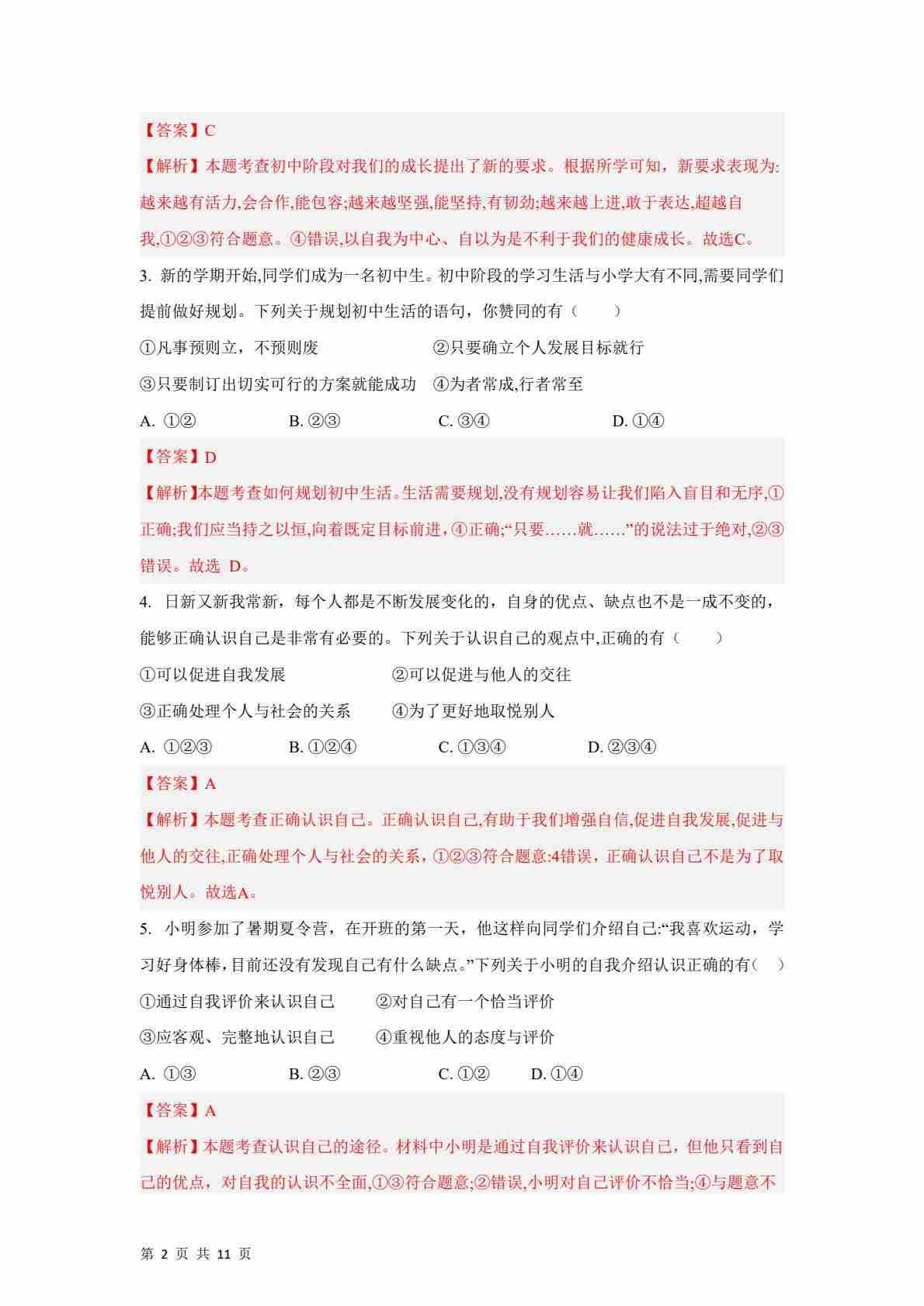 首页 > 全部 > 期中试卷 > 2024-2025学年七年级道德与法治上学期期中模拟卷(1) (解析版)