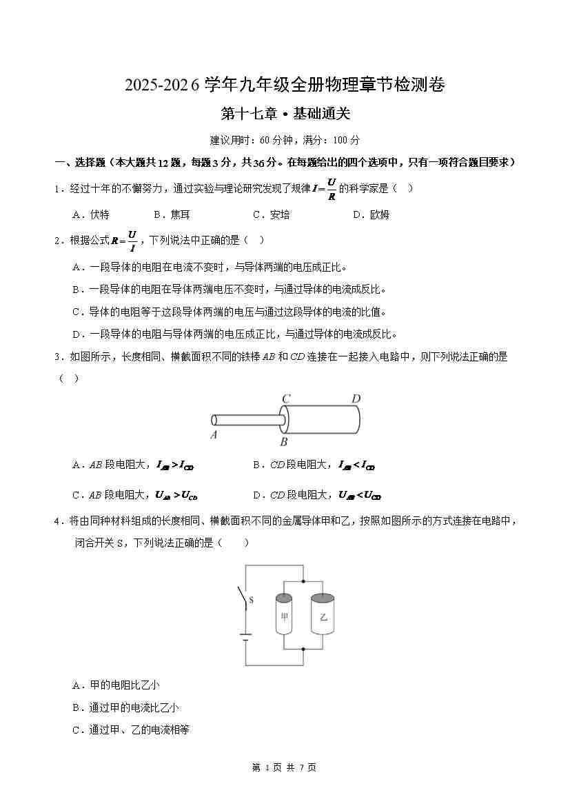 首页 > 全部 > 单元基础卷 > 第17章单元测试·基础卷(考试版A4)