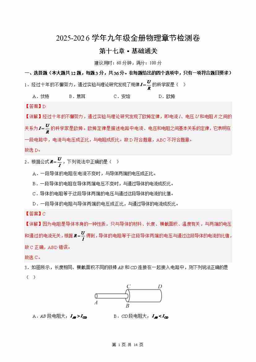 首页 > 全部 > 单元基础卷 > 第17章单元测试·基础卷(全解全析)
