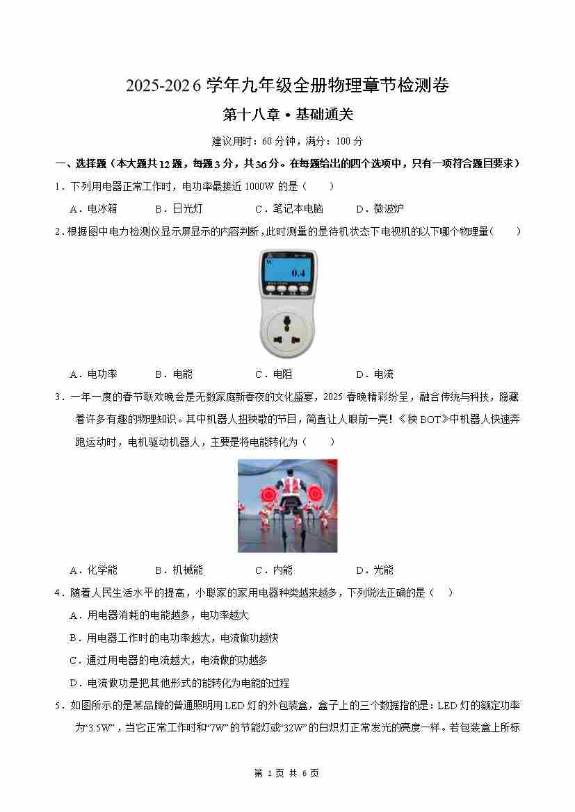 首页 > 全部 > 单元基础卷 > 第18章单元测试·基础卷(考试版A4)