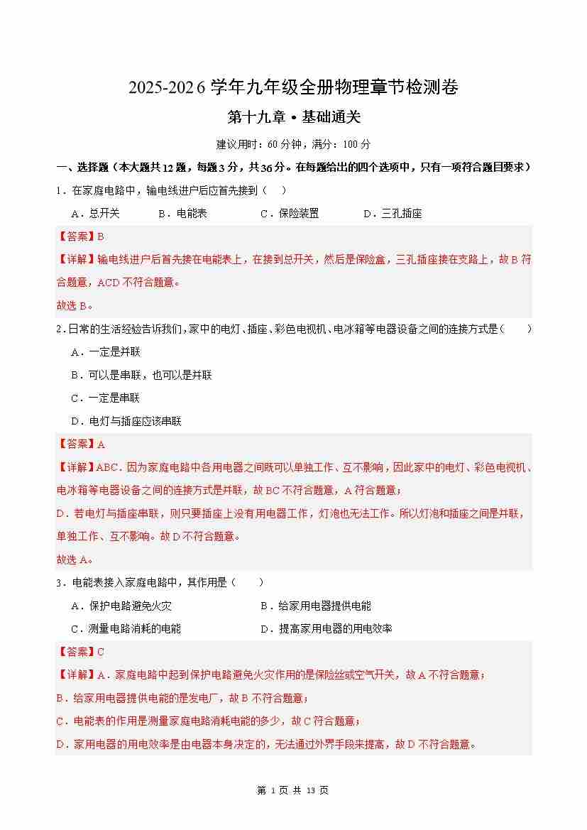 第19章单元测试·基础卷(解析版)