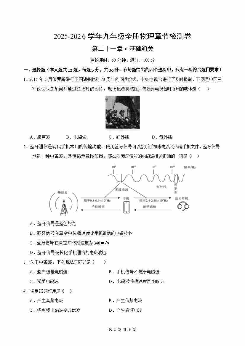 第21章单元测试·基础卷(考试版A4)