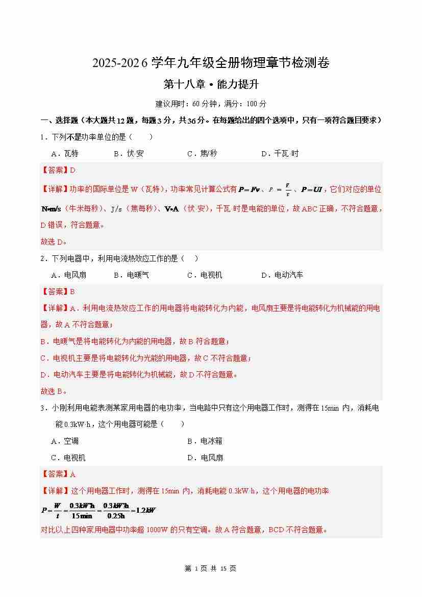 首页 > 全部 > 单元提升卷 > 第18章单元测试·提升卷(解析版)