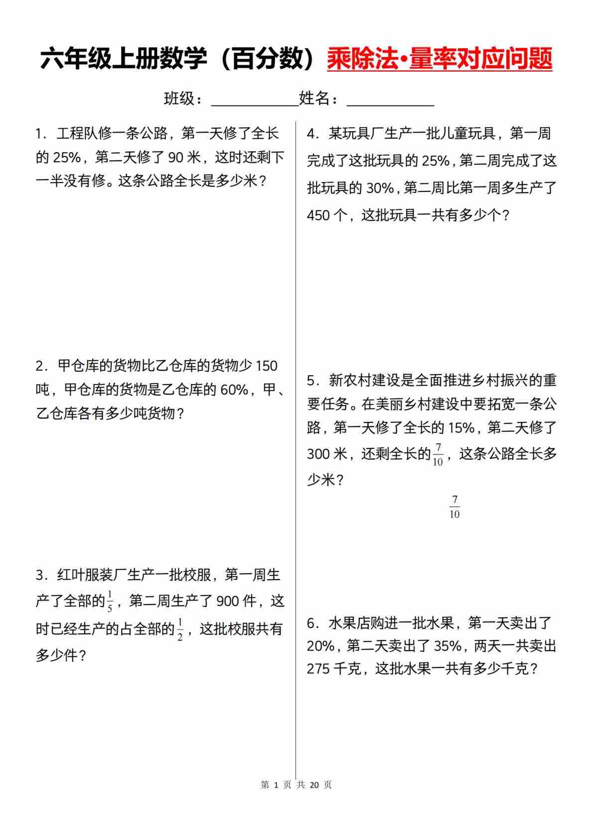 六(上)数学( 通用)数学(百分数)乘除法·量率对应问题_