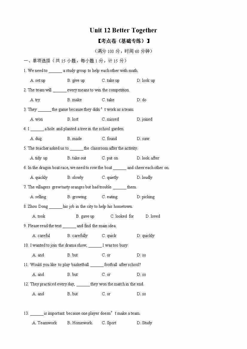 Unit 12 Better Together【考点卷·基础训练】(原卷版)