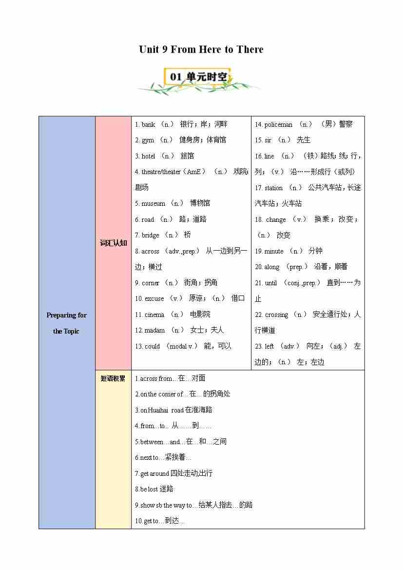 首页 > 全部 > 知识梳理 > Unit 9 From Here to There【速记清单】-2024-2025学年七年级英语下册单元速记•巧练(仁爱版)(教师版)