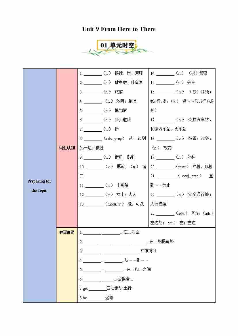 首页 > 全部 > 知识梳理 > Unit 9 From Here to There【速记清单】-2024-2025学年七年级英语下册单元速记•巧练(仁爱版)(原卷版)