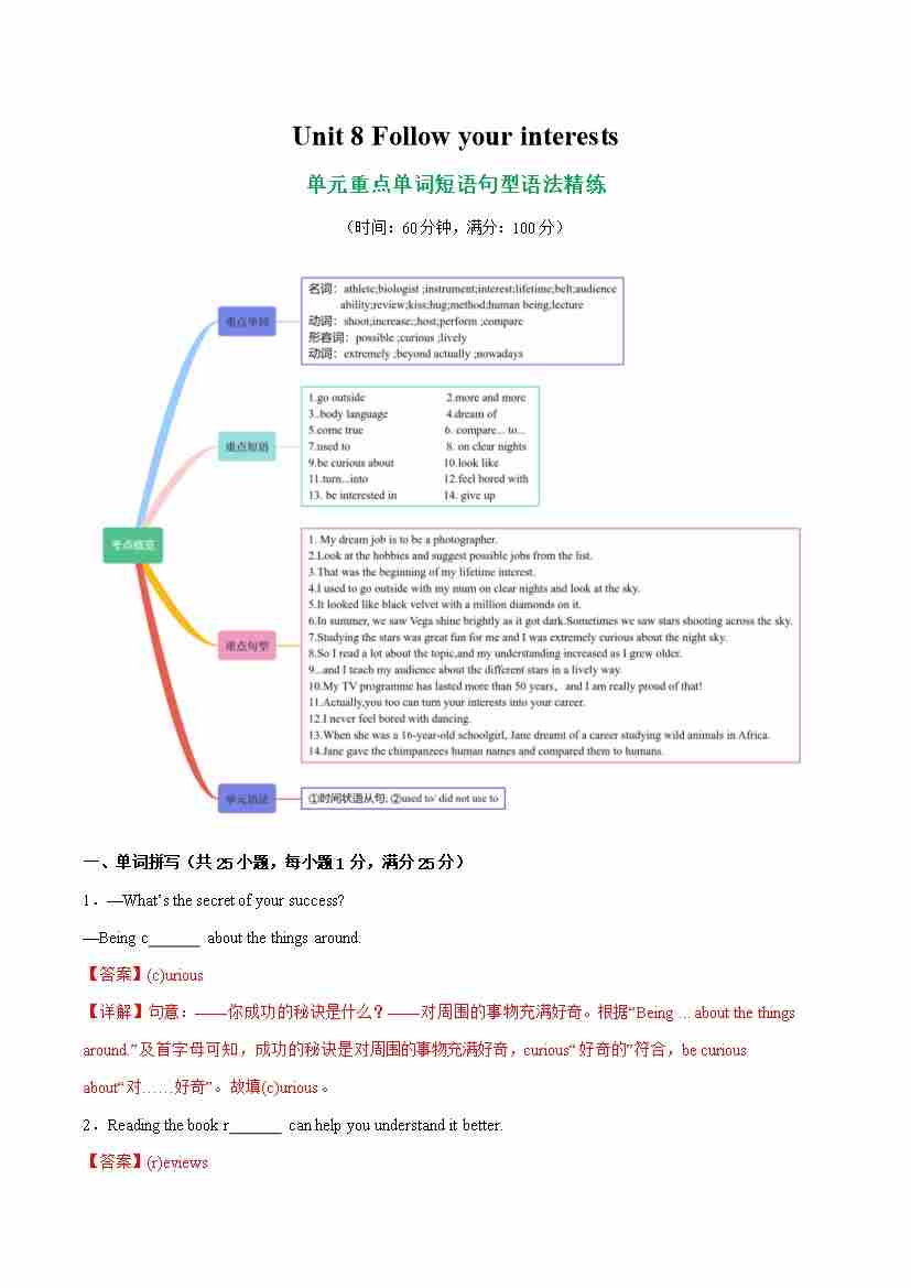 首页 > 全部 > 语法精练 > Unit 8 Follow your interests【语法精练】(解析版)