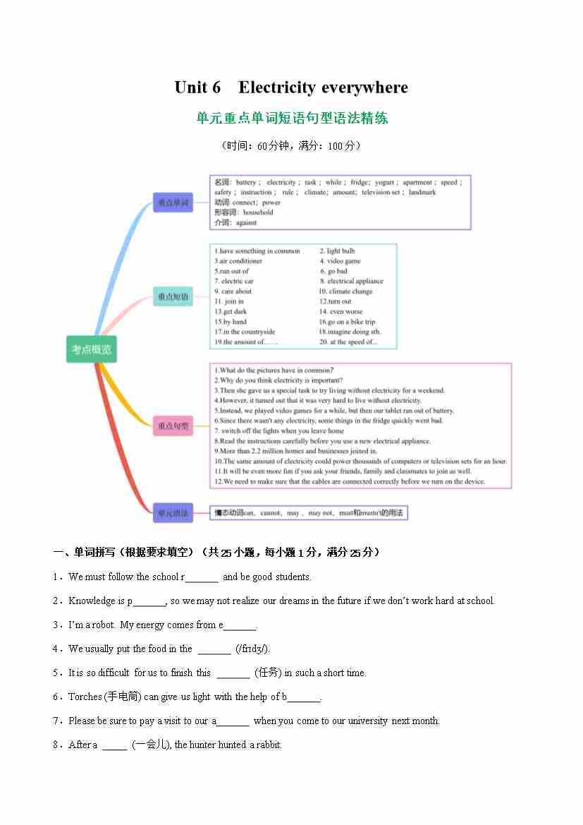首页 > 全部 > 语法精练 > Unit 6 Electricity everywhere【语法精练】(原卷版)