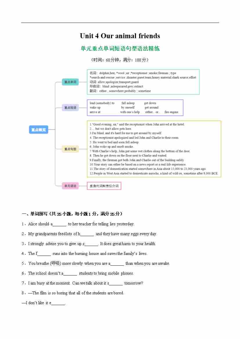 首页 > 全部 > 语法精练 > Unit 4 Our animal friends【语法精练】(原卷版)