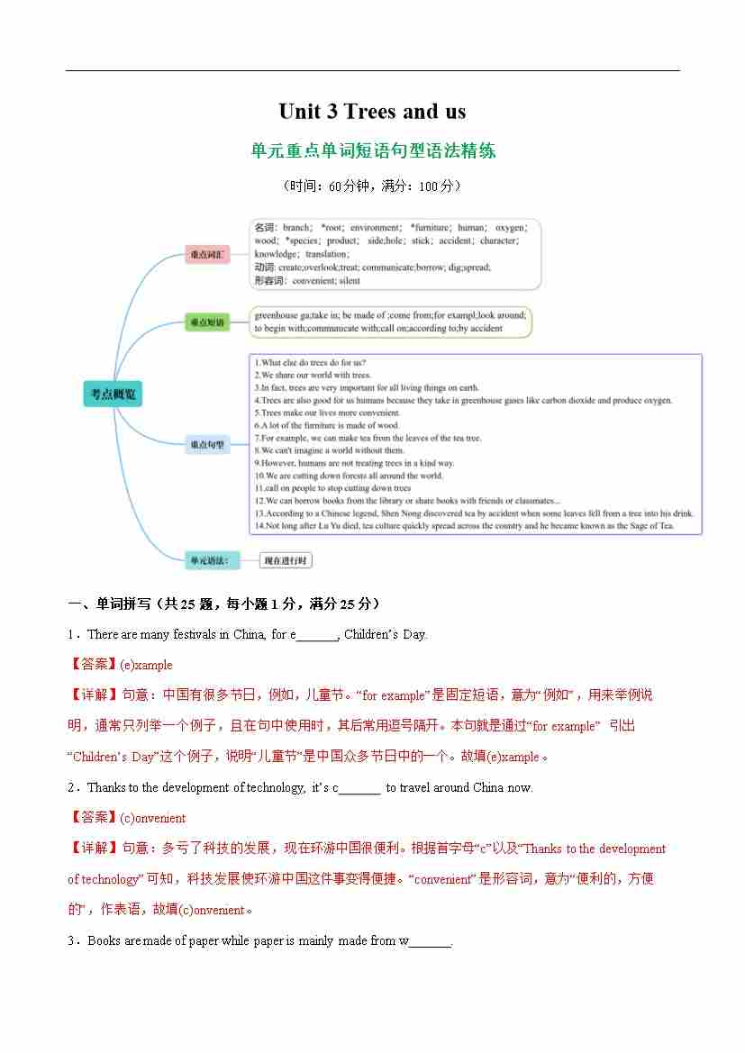 首页 > 全部 > 语法精练 > Unit 3 Trees and us【语法精练】(解析版)