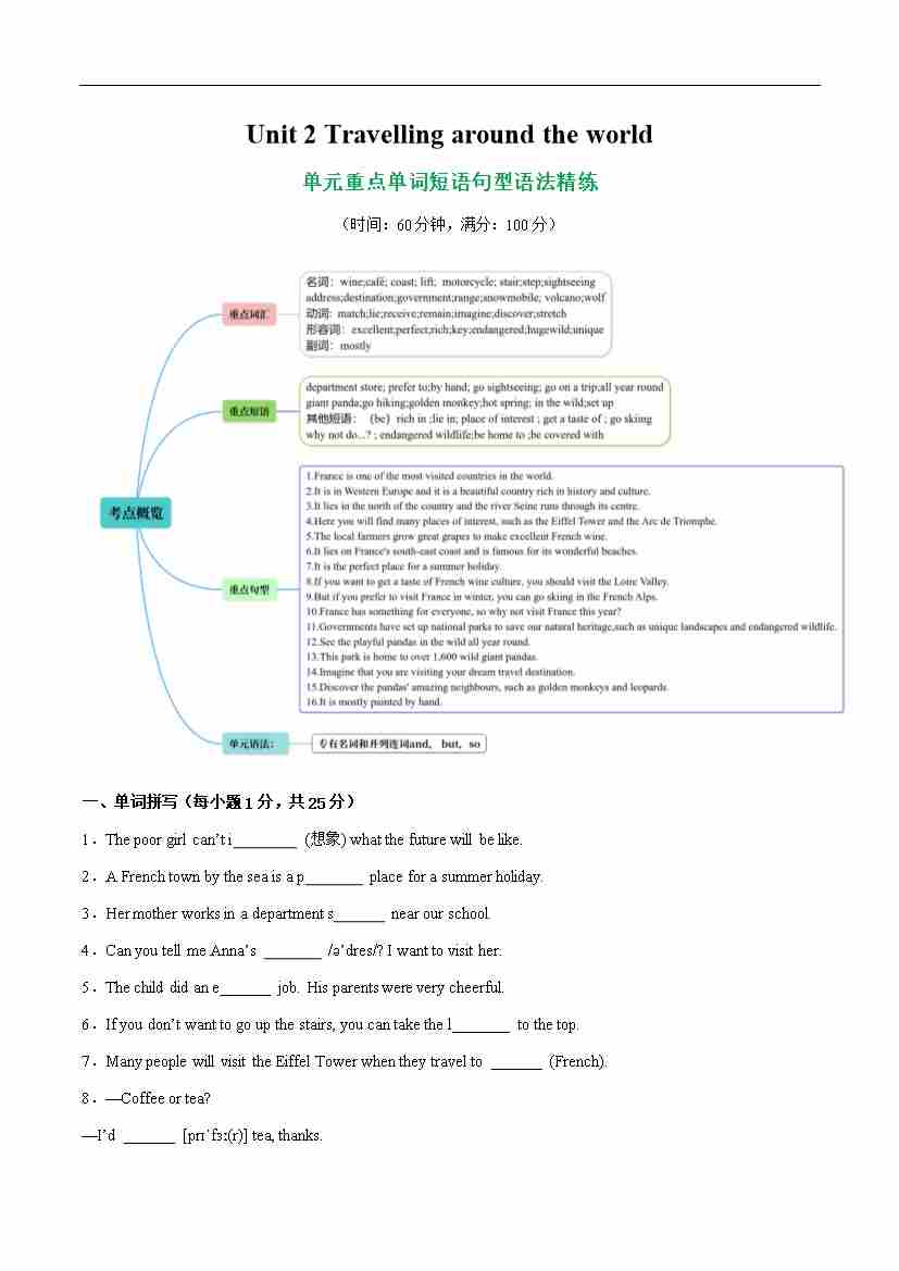 首页 > 全部 > 语法精练 > Unit 2 Travelling around the world【语法精练】(原卷版)