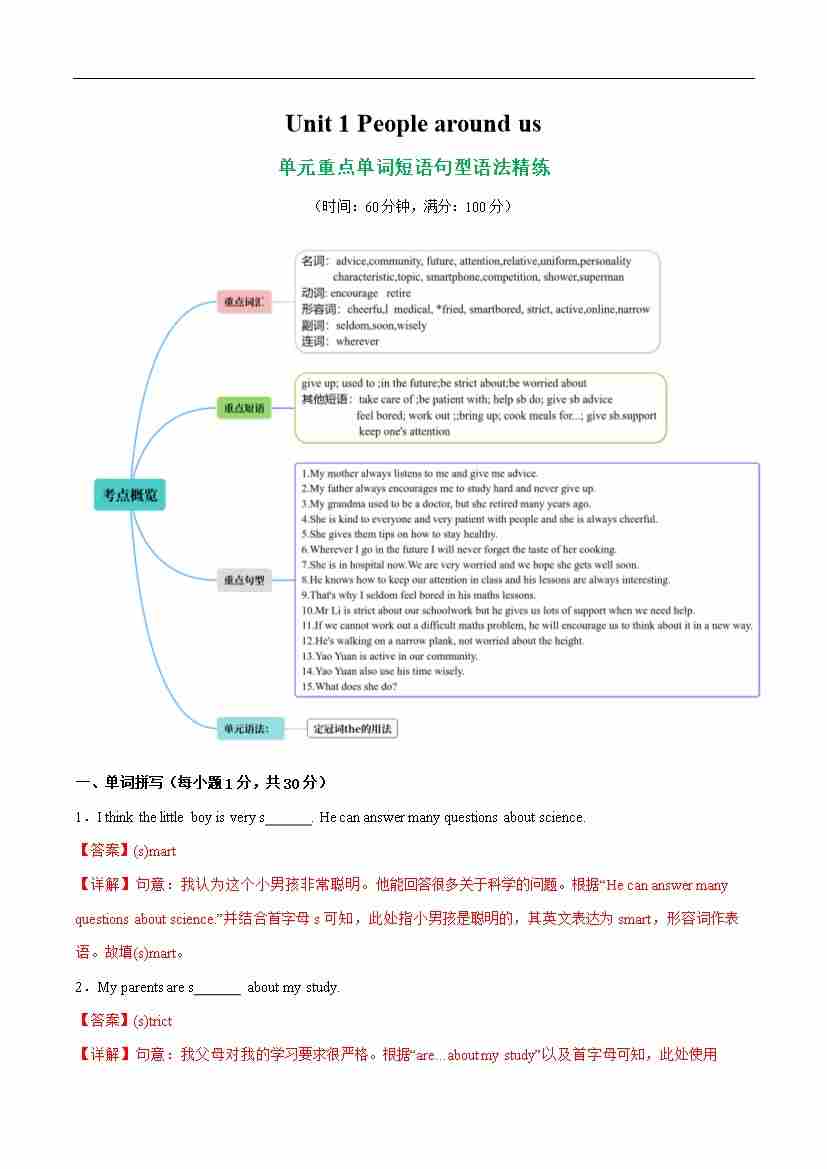 首页 > 全部 > 语法精练 > Unit 1 People around us【语法精练】(解析版)