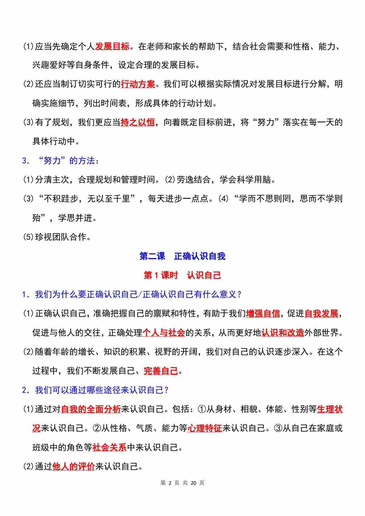七年级(上册)道法:单元知识背诵清单-