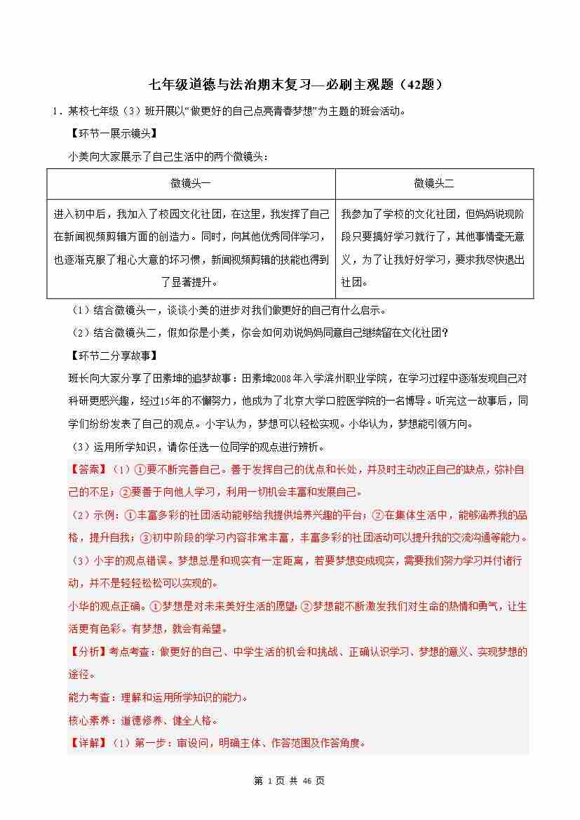 首页 > 全部 > 期末专项 > 期末复习—必刷主观题(42题)(解析版)