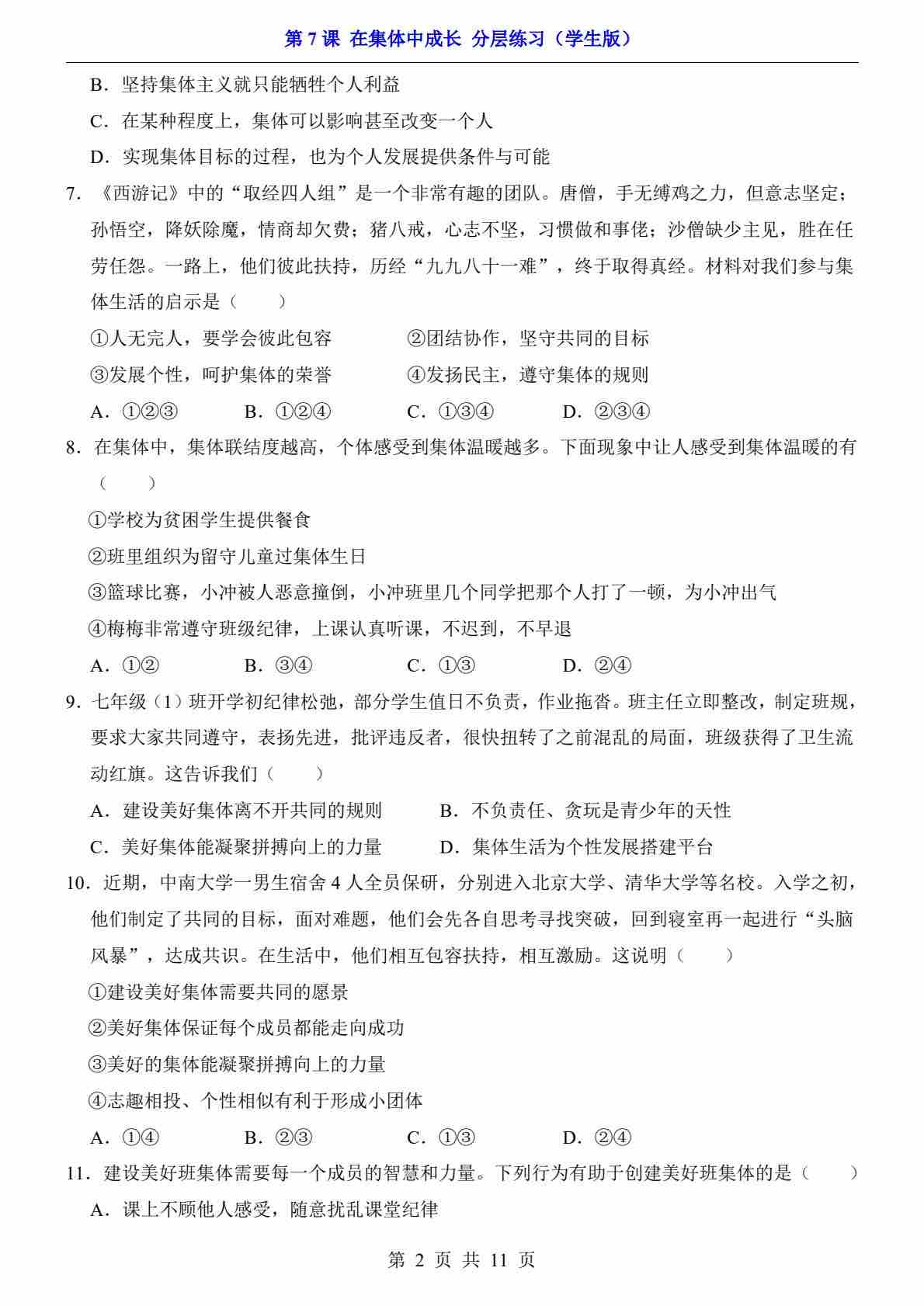 首页 > 全部 > 一课一练 > 第7课 在集体中成长(分层练习)