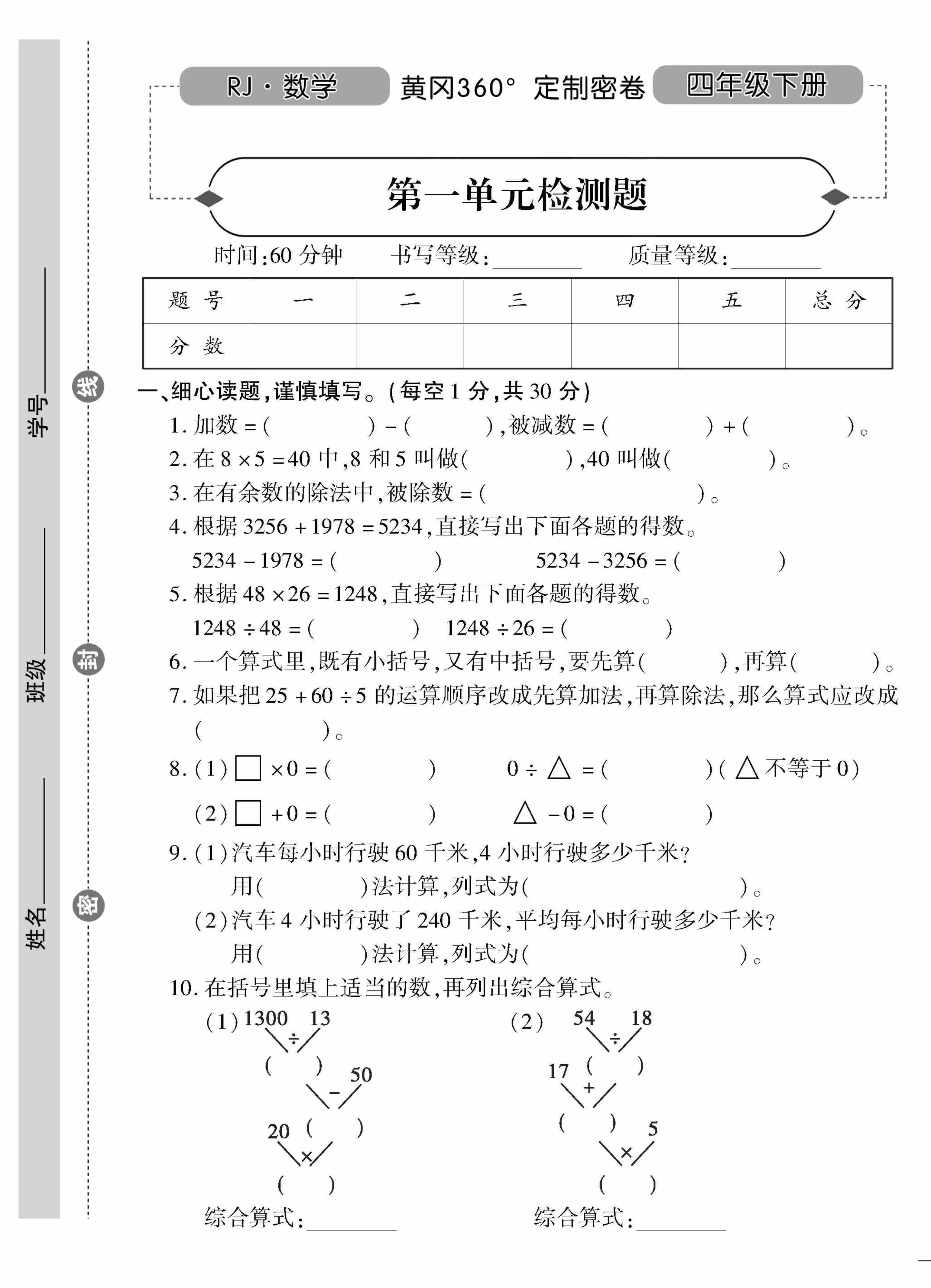 首页 > 全部 > 热门教辅 > 四(下)数学人教版《黄冈360°定制密卷》