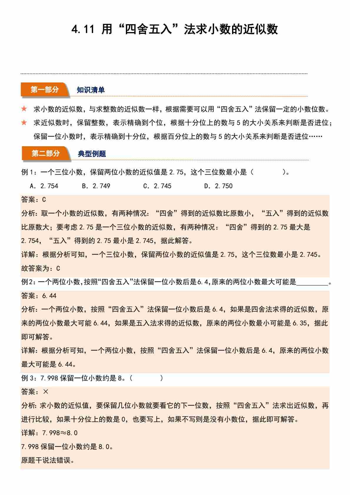 4.11 用“四舍五入”法求小数的近似数(分层作业)