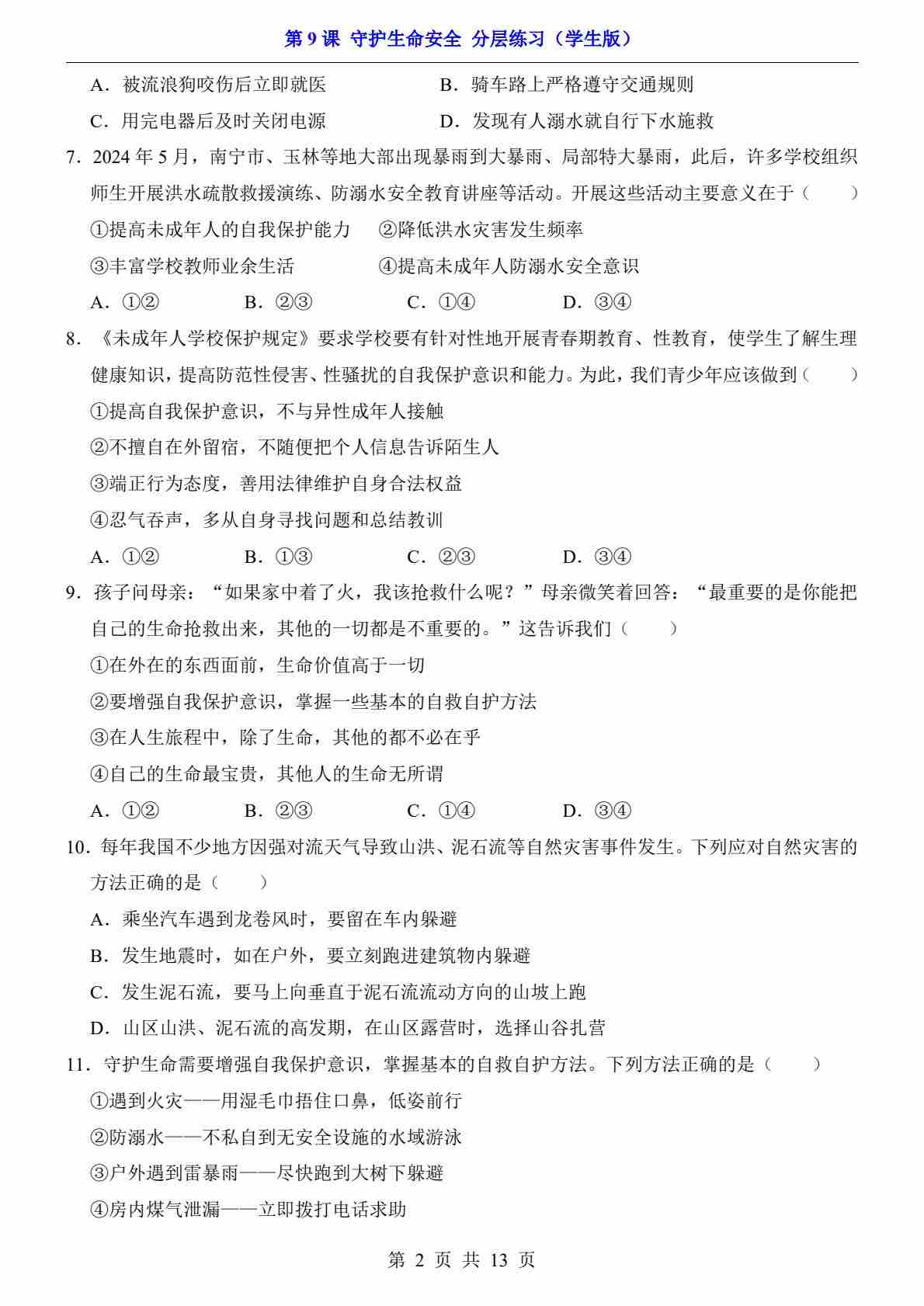 首页 > 全部 > 一课一练 > 第9课 守护生命安全(分层练习)