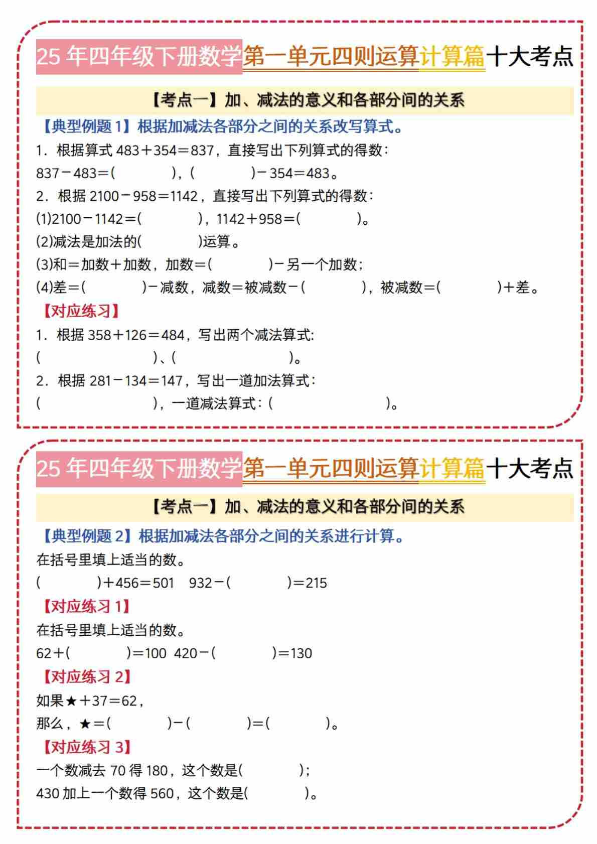 四(下)数学人版 版第一单元四则运算·计算篇【十大考点】