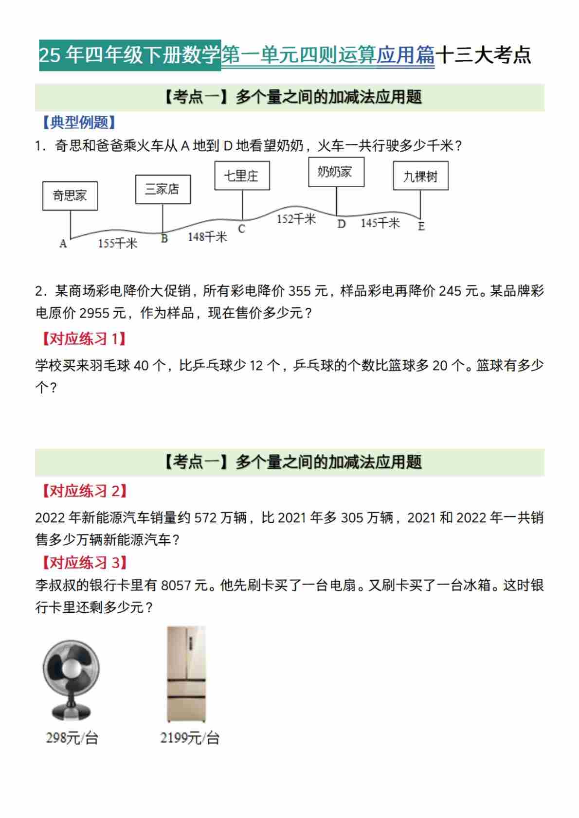 四(下)数学人版 版第一单元四则运算·应用篇【十三大考点】
