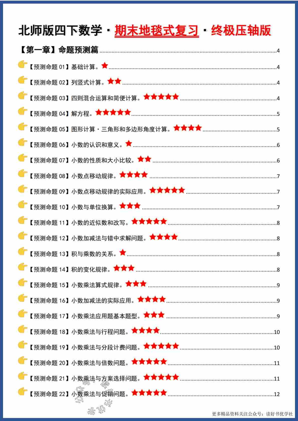 四(下)数学北师大版期末复习·终极压轴版