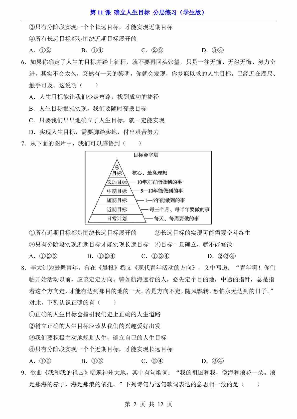 首页 > 全部 > 一课一练 > 第11课 确立人生目标(分层练习)