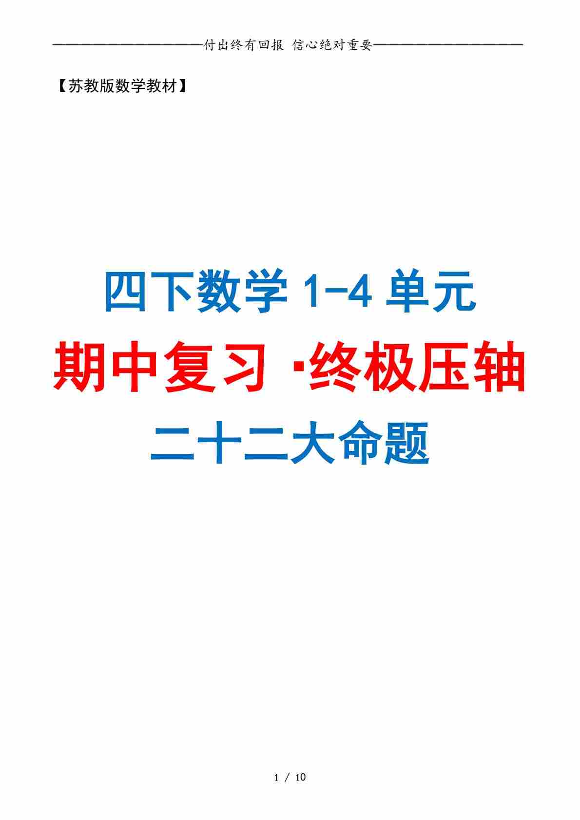 四(下)数学 【苏教】【期中复习·终极压轴版(原卷版)10页】