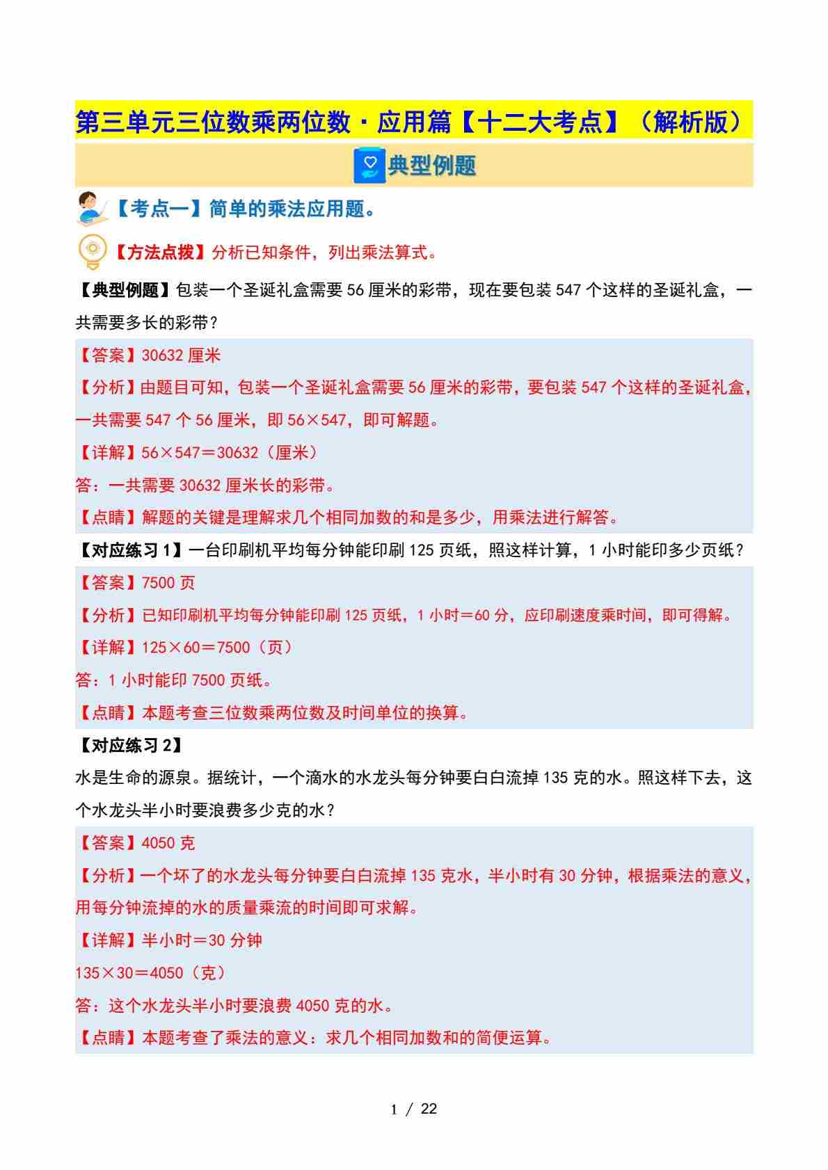 首页 > 全部 > 专项练习 > 四(下)苏教版数学【第三单元三位数乘两位数·应用篇【十二大考点】(解析版)】