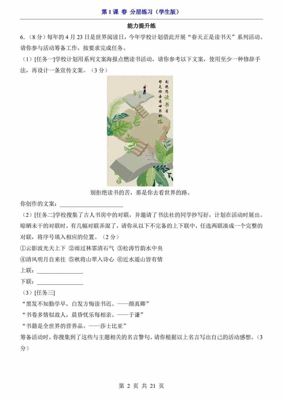 首页 > 全部 > 分层练习 > 第1课 春(分层练习)