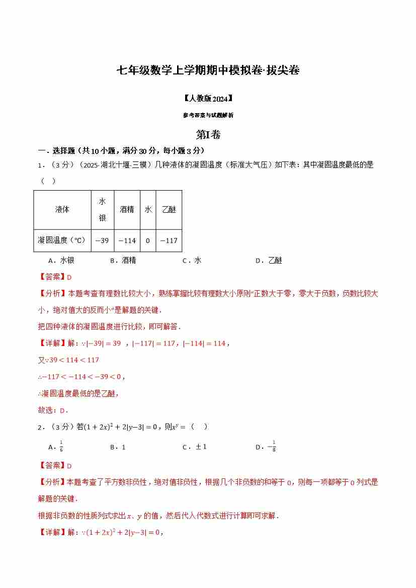 首页 > 全部 > 期中试卷 > 七年级数学上学期期中模拟卷·拔尖卷(人教版2024,举一反三)(教师版)