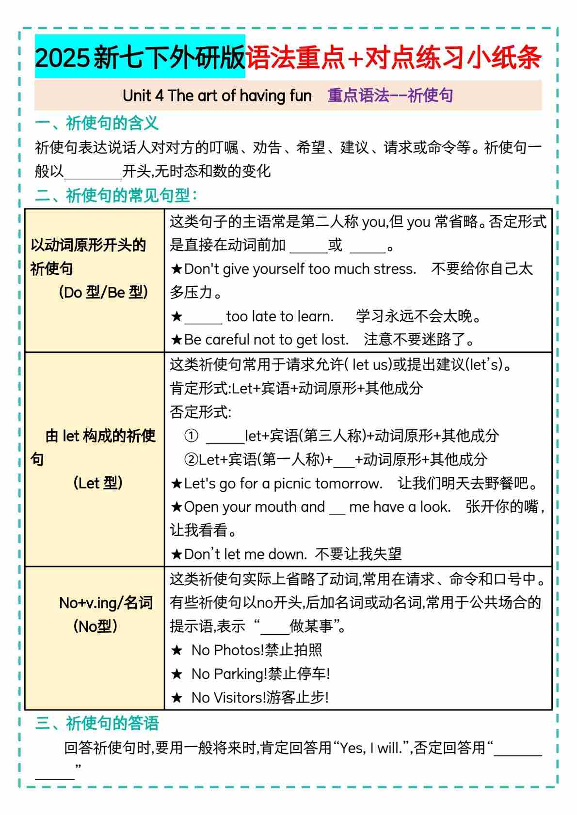 2025新七下外研版语法重点+对点练习小纸条——Unit4(1) 2025-1-8 19329 20